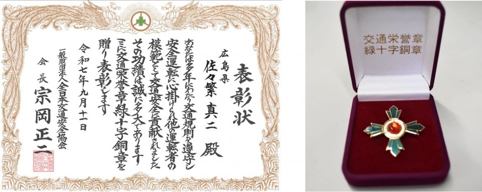 全日本交通安全協会より、交通栄誉章を受章しました。